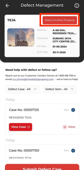 4. Optional: Click on “Select Another Property” button to change to another property (if you have multiple property under Sime Darby Property).